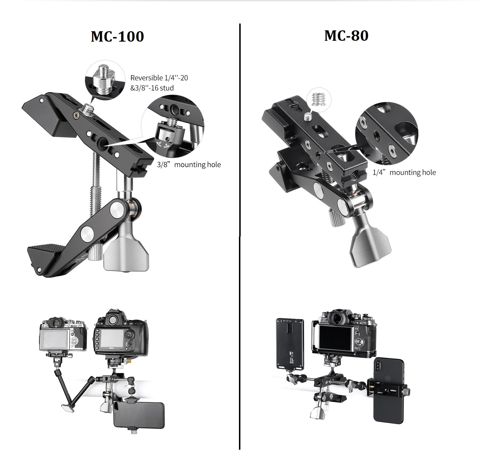 The MC-100 has multiple threads that allows you to mount additional accessories such as your mobile phones with the Leofoto AM-2L Magic arm and PC-90II. Lights and even a 2nd mirrorless camera can be mounted on it with the Leofoto AM-3 Kit or AM-4 Kit. A dedicated mount with anti-twist notches are built right into it!