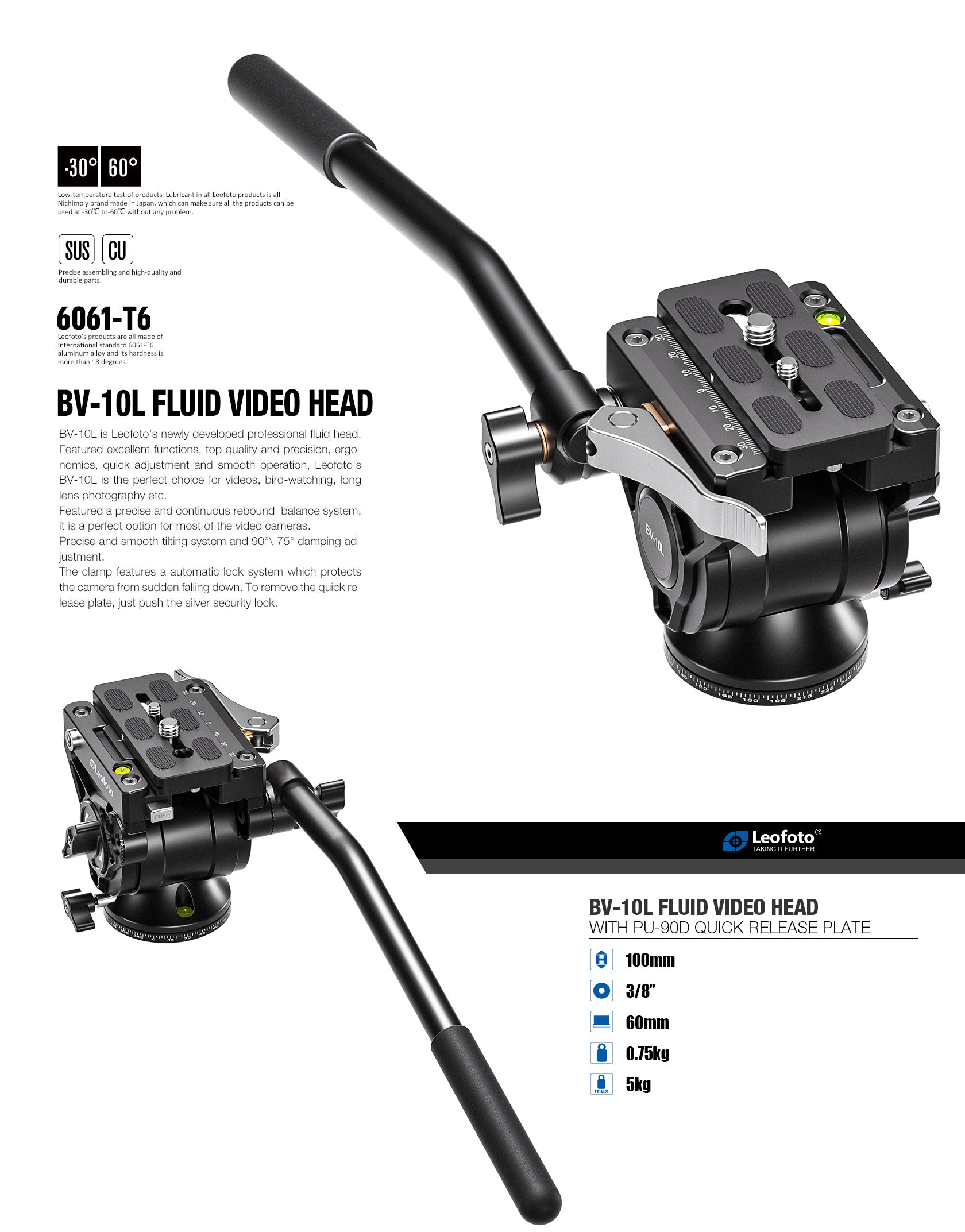 BV-10L (Quick release 2024 version) Fluid Head Specifications
