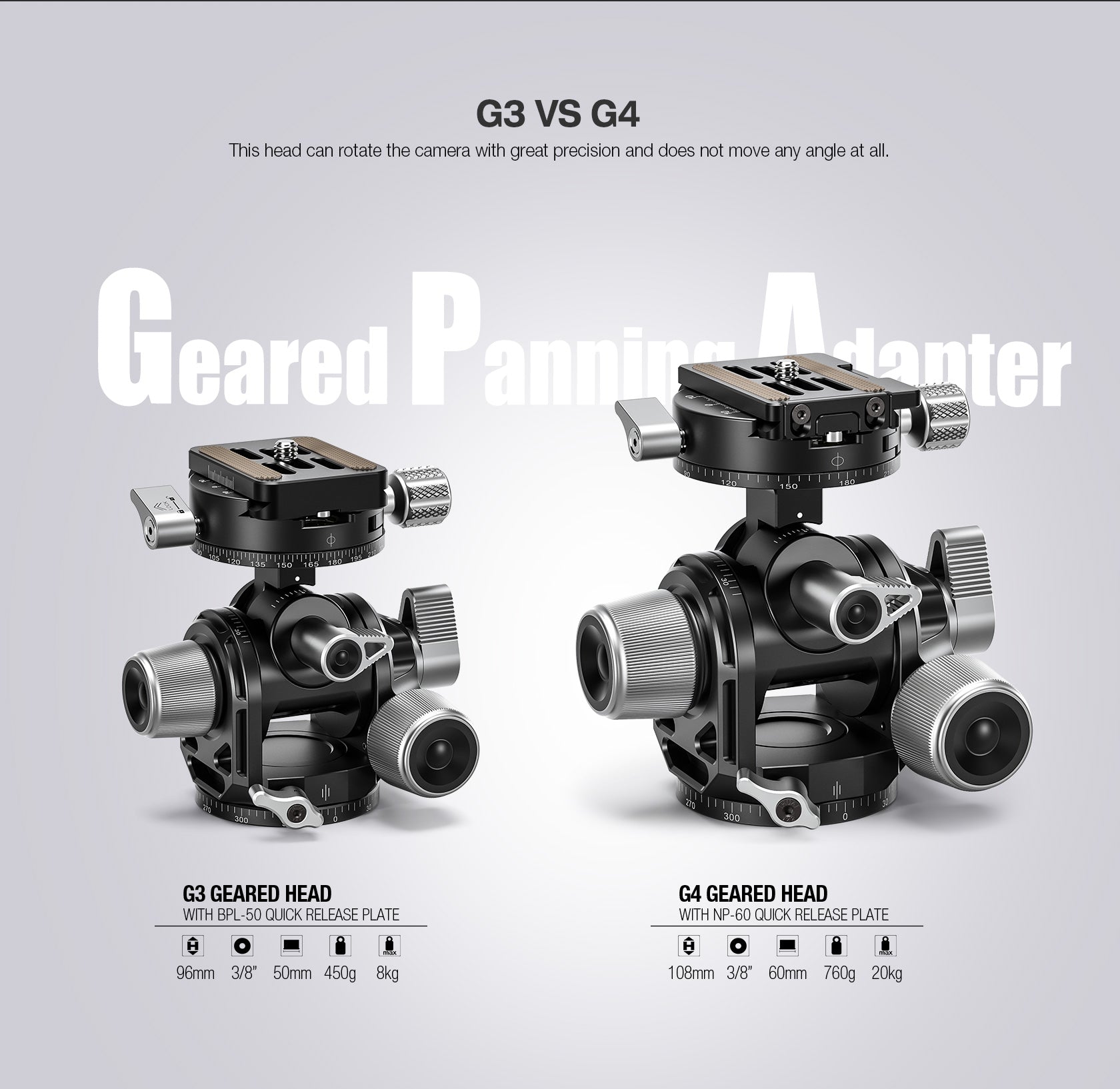 The Leofoto G3 geared heads is the head for you for precision adjustment from Leofoto. The G3 has 2 dials that allows you for quick adjustments and 2 large knobs allow you to do minute adjustments unrivaled by other types of heads. Included BPL-50 plate.