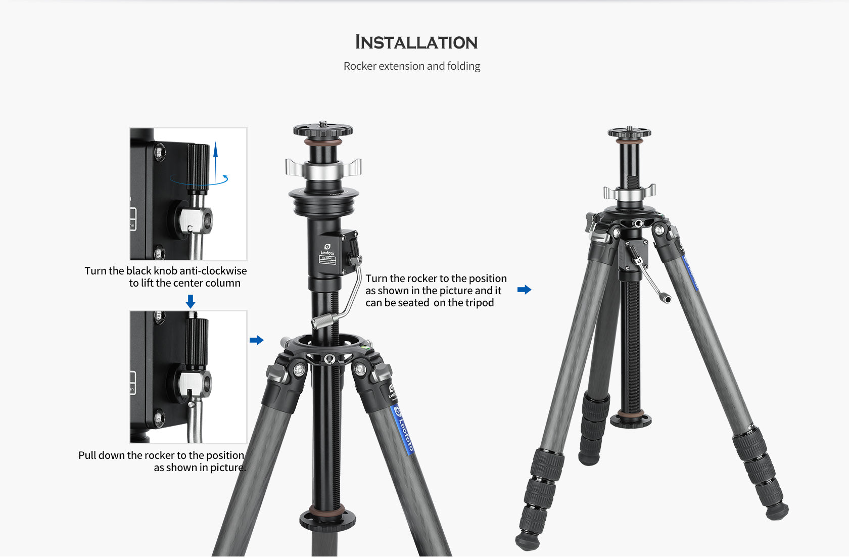 The Leofoto GC-364Cis designed to fit LM-3xx series tripods & GC-404C Geared Center Column is used in conjunction with the LM-4xx series tripod to increase the maximum height of the tripod