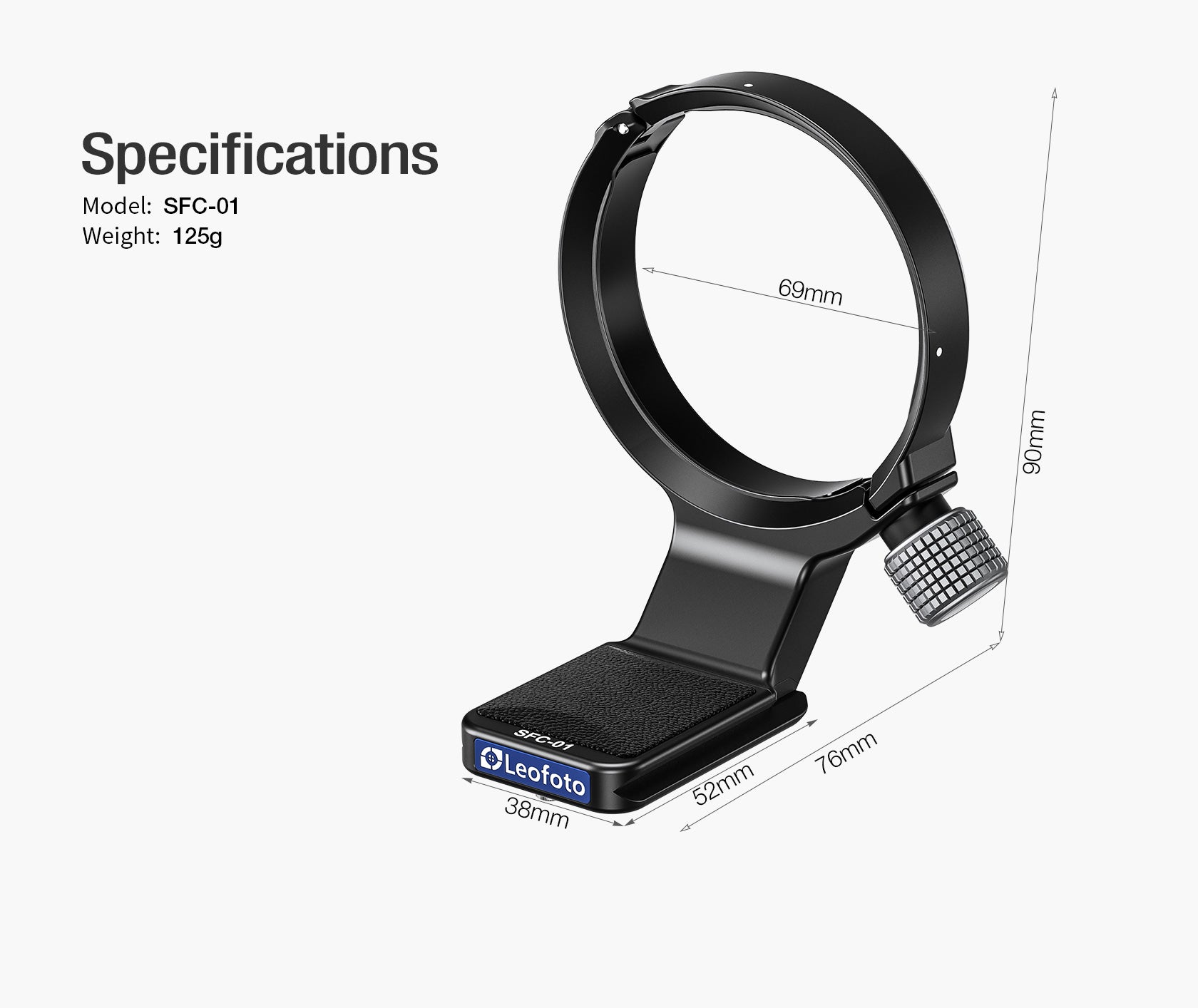 The Leofoto SFC-01 lens collar is a precision-engineered accessory designed to provide enhanced stability, convenience, and control for photographers using the SONY FE 70-200mm F4 Macro G OSS II telephoto lens. Crafted from premium materials and meticulously designed for functionality, the SFC-01 is ideal for professionals and enthusiasts alike who want to get the most out of their equipment in demanding shooting scenarios.