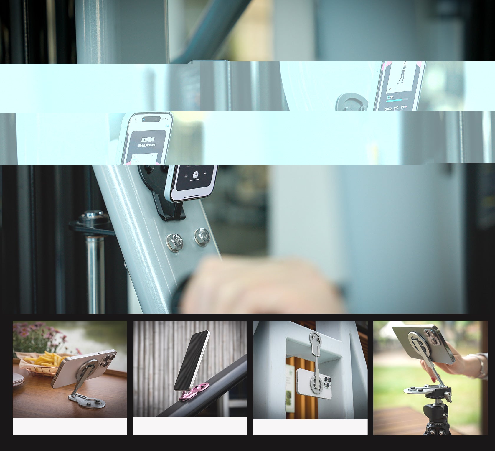 - Double-sided magnetic mount for flexible smartphone orientation
