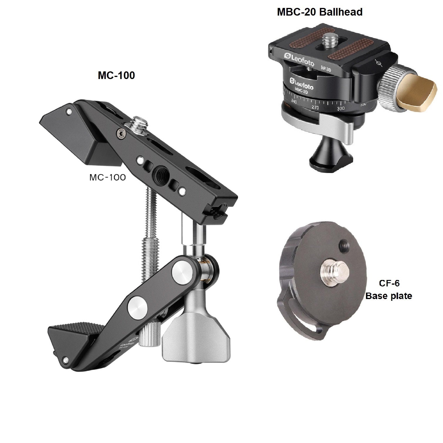 Leofoto MC-100 Multipurpose clamp, CF-6 and MBC-20 bundle