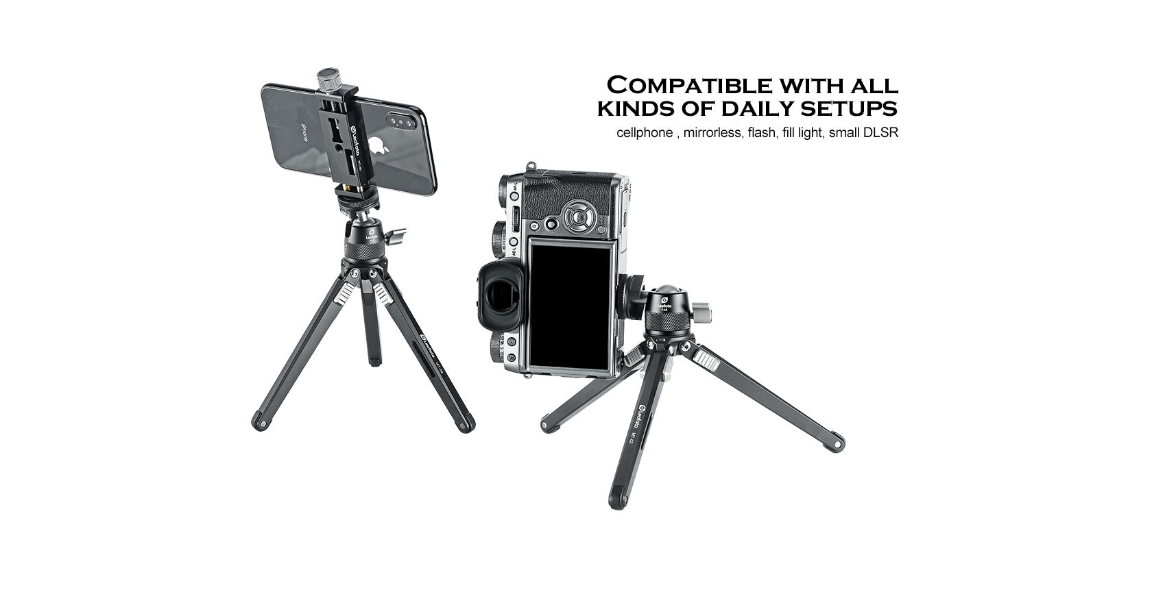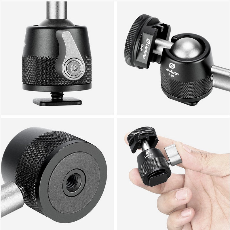 The Leofoto F-19 mini ballhead is a tiny ballhead that's compact and ready to use on cold shoe mounts of camera or directly mounted on mini tripods like MT-03, MC-80/100 clamps.