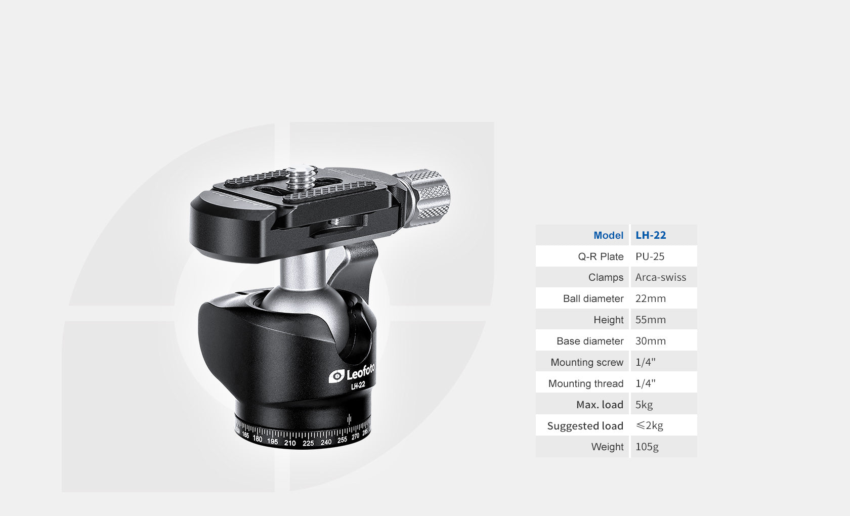 - The optional LH-22 ballhead is suitable for compact cameras, and small mirrorless camera and even smaller Fullframe cameras. Perfectly suited for MT-02C.