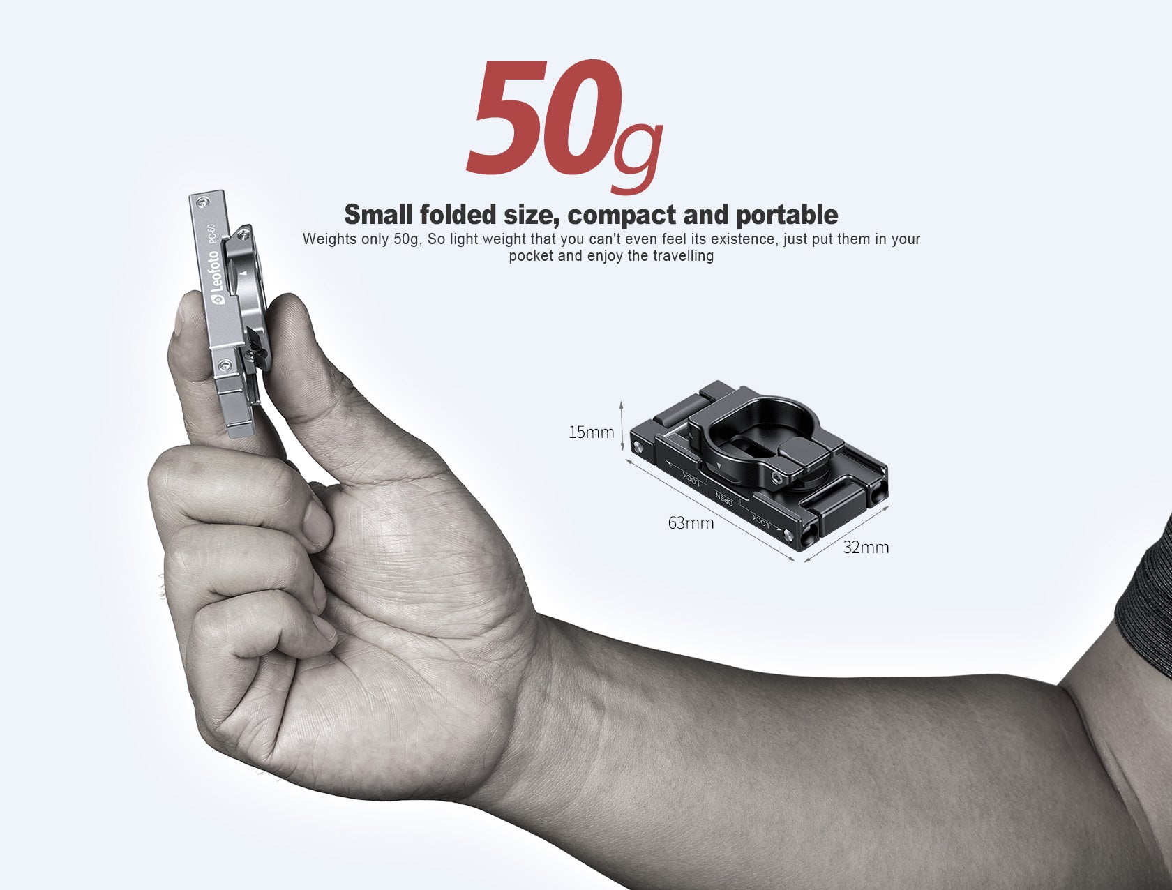 - Lightweight compact metallic phone clamp (50g only), you can affix to your phone all the time
