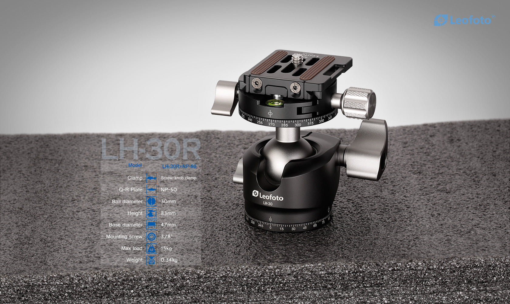 Leofoto LH-30R, 30mm Low Profile Ball Head, Arca-Swiss with RH-1L panoramic clamp + NP-50 plate