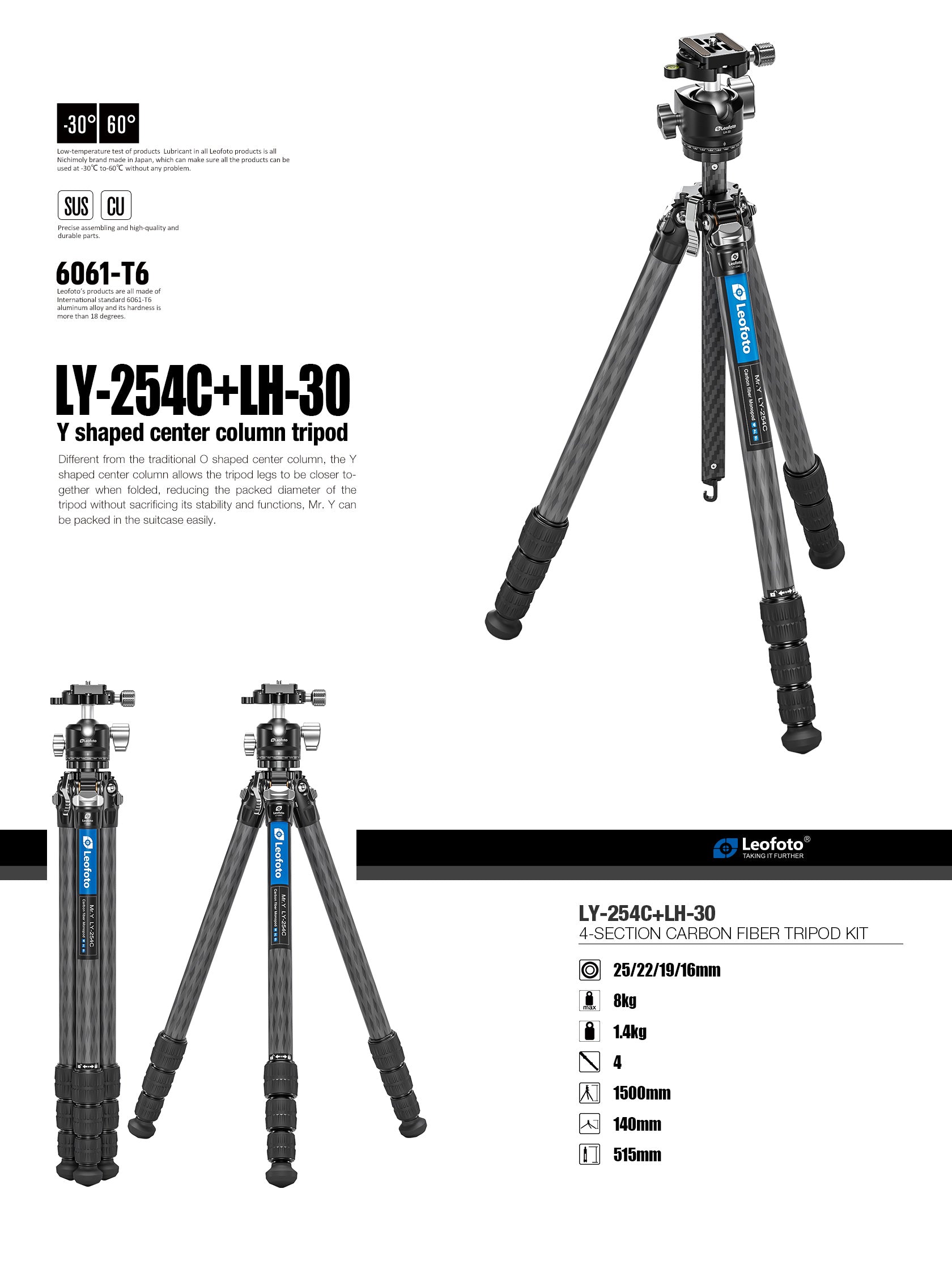 Leofoto LY-254C+LH-30R Tripod Set Specification