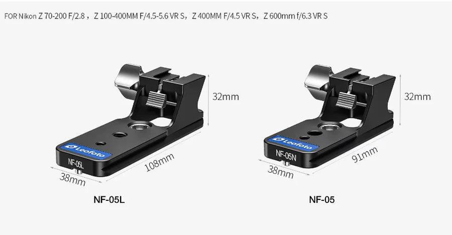 *The Leofoto NF-05N lens foot offers standard length support, while the Leofoto NF-05L (Long) provides an extended design tailored specifically for longer lenses, ensuring enhanced stability and functionality.